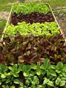This picture is one of our lettuce beds. Its a 10′ x 4′ bed and I believe that there are over 80 heads of lettuce. It really is the way to go. Raised beds are really easy to work in, you can practically eliminate all weeds and there’s no tilling to be done. You don’t even have to shovel to turn the soil over. Just add an inch or two of compost and you’re good to go. We’ll talk about raised beds in more detail here.