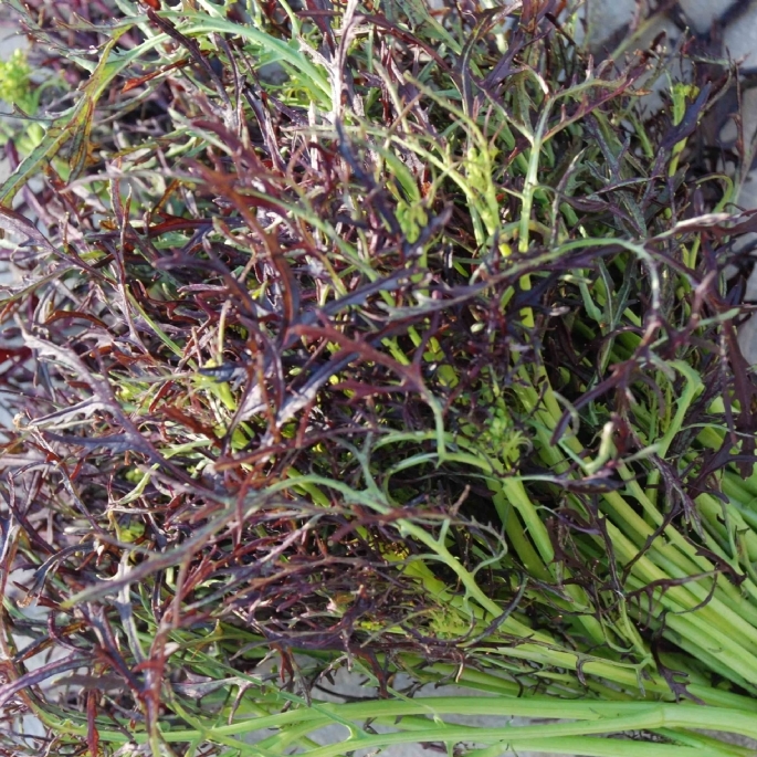 A single mizuna plant has the ability to produce around 200 stems of feathery greens, and reach a height of about half a meter.