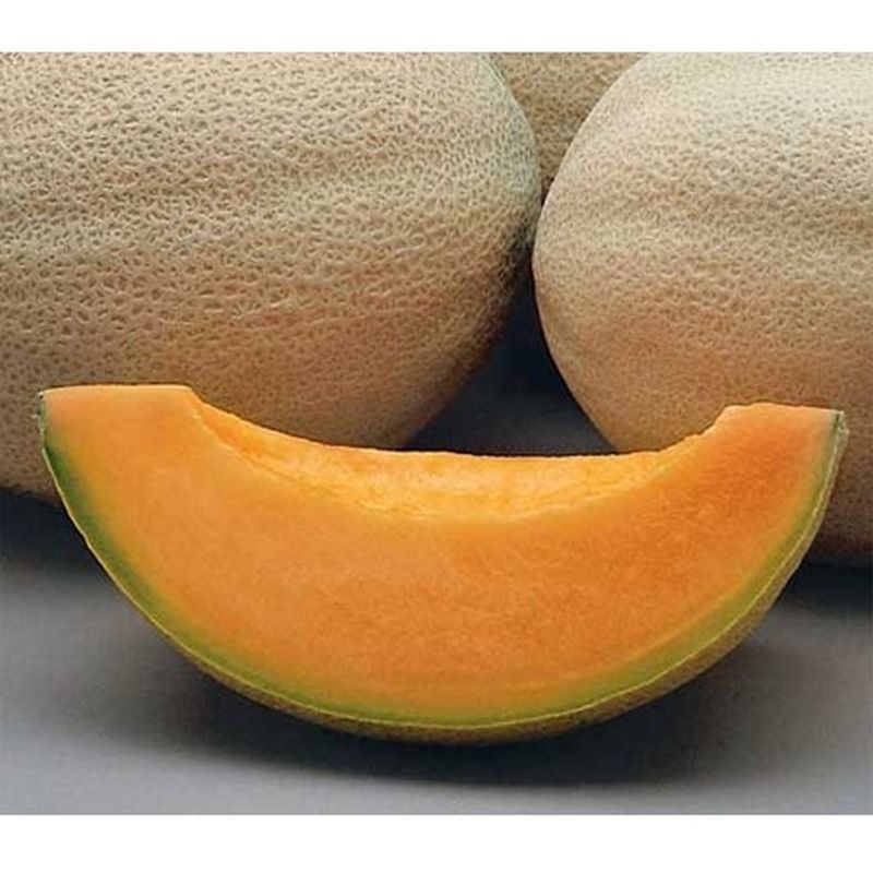 This is a very popular fruit, about 5lbs in size, with a very sweet and juicy flavor that will definitely satisfy your taste buds! Athena Cantaloupe is disease resistant, which makes it easy to leave on the vine for an extended amount of time in order to maximize its sweetness. This melon is very firm, with medium sized netting along the skin. Each vine is approximately 2-3 feet high when staked up, and is high yielding.